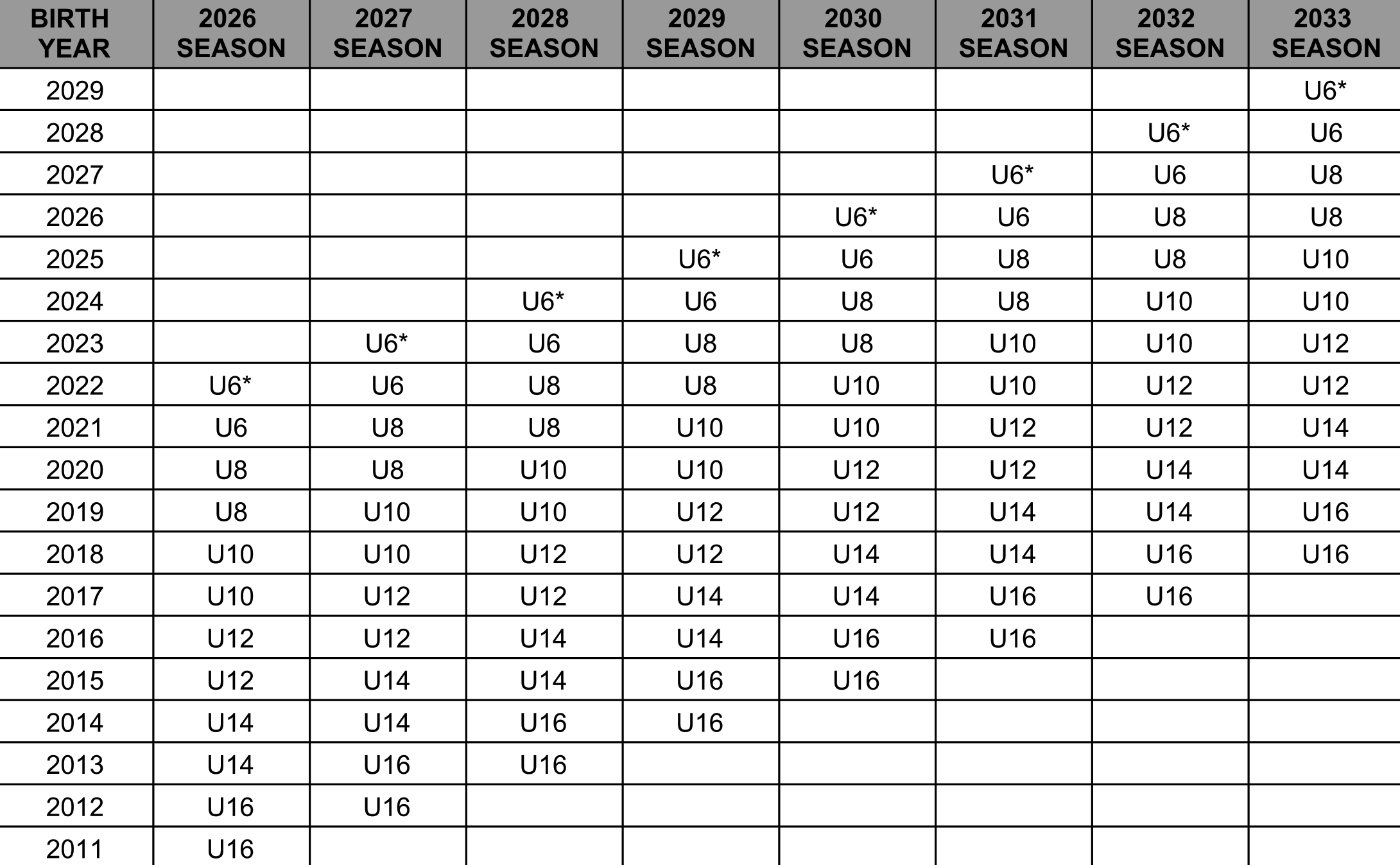 * Players must be 4 on or before July 31